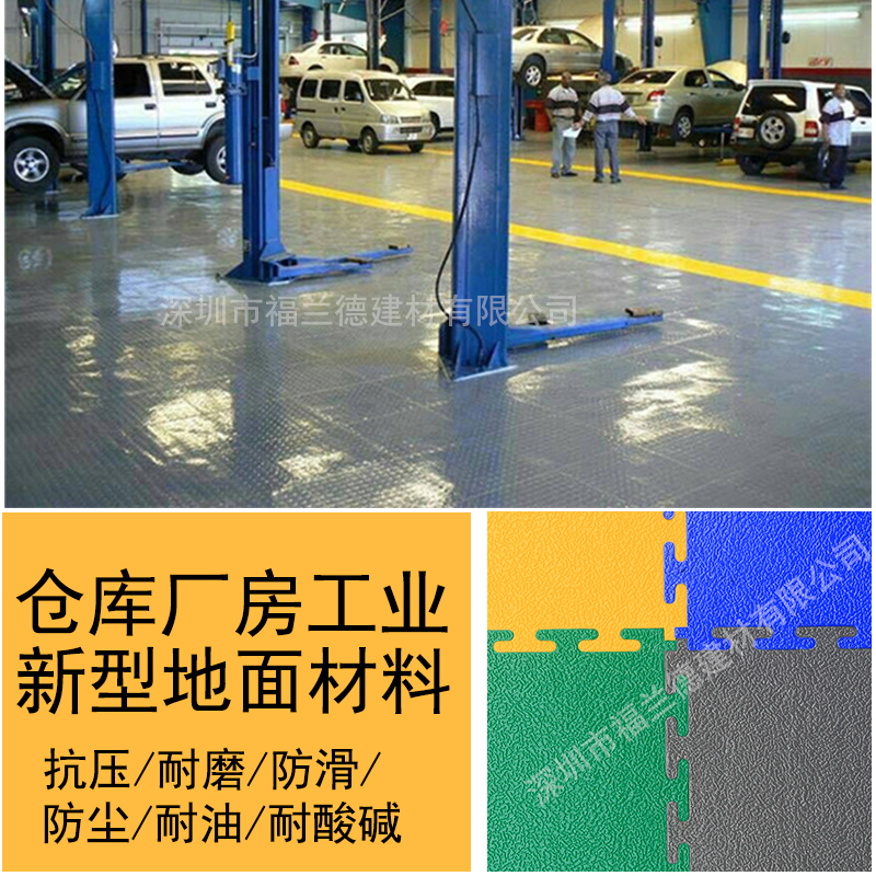 眾所周知,汽修廠地面浸油可是司空見慣的老問題了,幾乎和絕癥一樣,一旦浸入油劑就無法清理干凈,久而久之,地面就成了大花臉,一不留神就摔倒。汽修廠來往車輛和行人又多,根本不可能花大成本去打造難以維護的高級地板,汽車修理車間地面如何處理?汽油倒地上了用什么清洗地面?這些難題困擾著我們很久,所以尋求新式防滑耐磨地面就成了我們的出路。使用了福蘭德汽車工廠車間專用地板之后,高分子的穩定結構直接杜絕了油劑侵染的可能性,而且鋪設和移動都很方便,模塊互鎖式結構,一般規模車間,兩人一日即可完成滿鋪;現在客戶們都夸贊我們的機器維修車間地面干凈整潔。