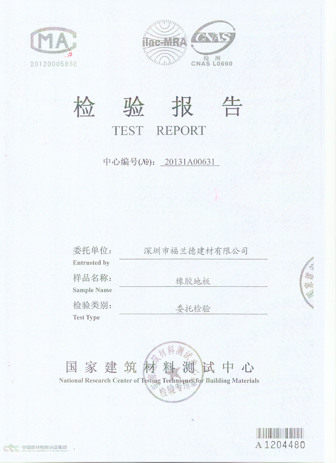 橡膠地板2.0質(zhì)量檢驗(yàn)報(bào)告