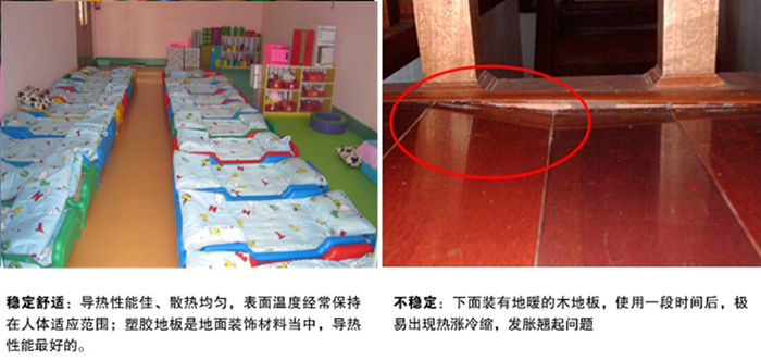 復合地板、地磚、理石地面走路時會有很大的聲音和腳滑感, 膠地板有吸音作用,走路時不會干 擾周圍環境,腳感舒適,防滑耐磨。